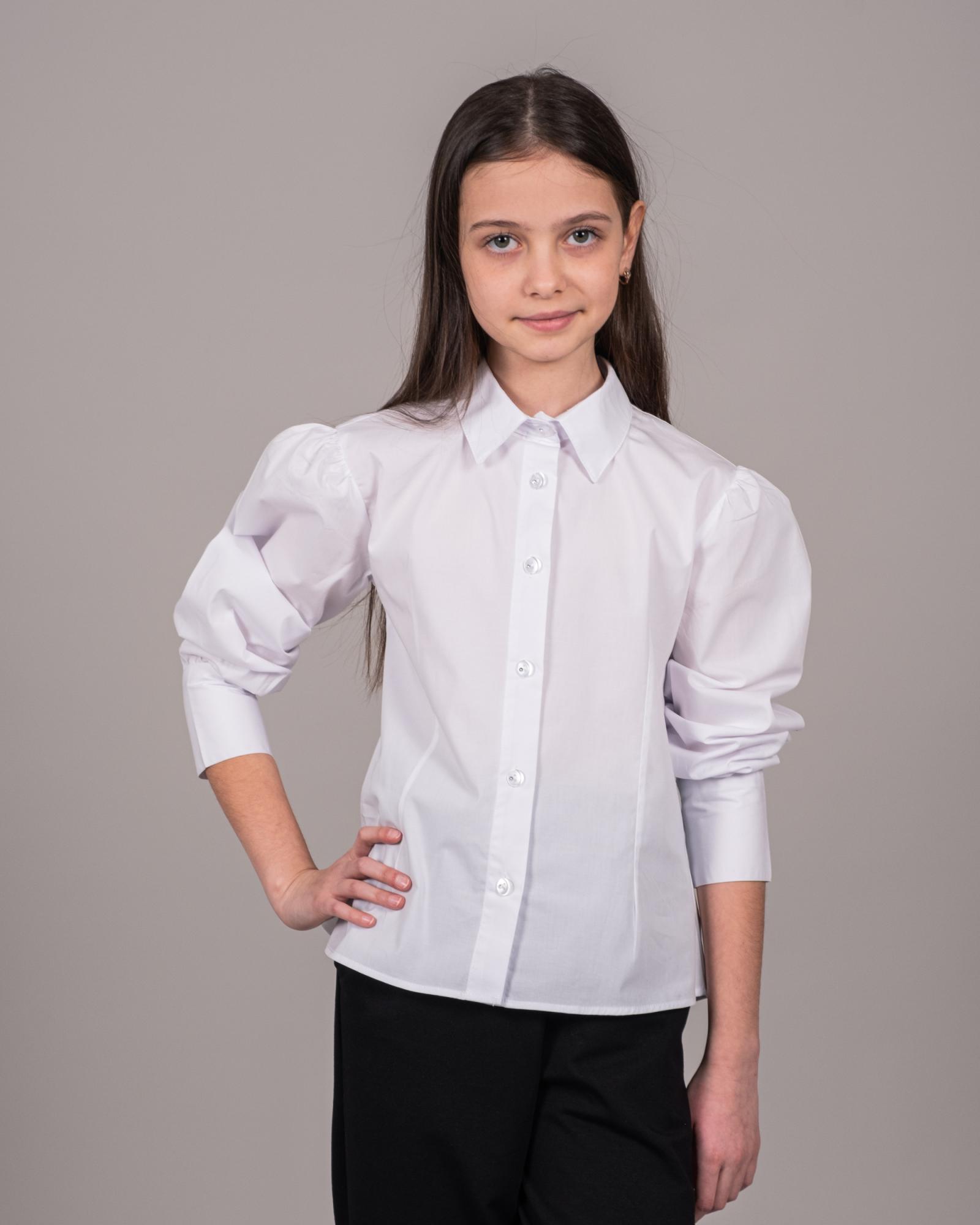 Белая блузка-рубашка с отложным воротничком - это классический вариант для девичьей школьной формы и торжественных мероприятий. Длинные рукава на манжетах с пуговицами. Воротник отложной. Блузка изготовлена из тонкого полотна на хлопковой основе, очень приятного телу. Она хорошо держит форму при активной носке и не теряет ее после многократных стирок. В такой милой блузке вашему ребенку будет очень комфортно на уроках в школе и торжественных мероприятиях.