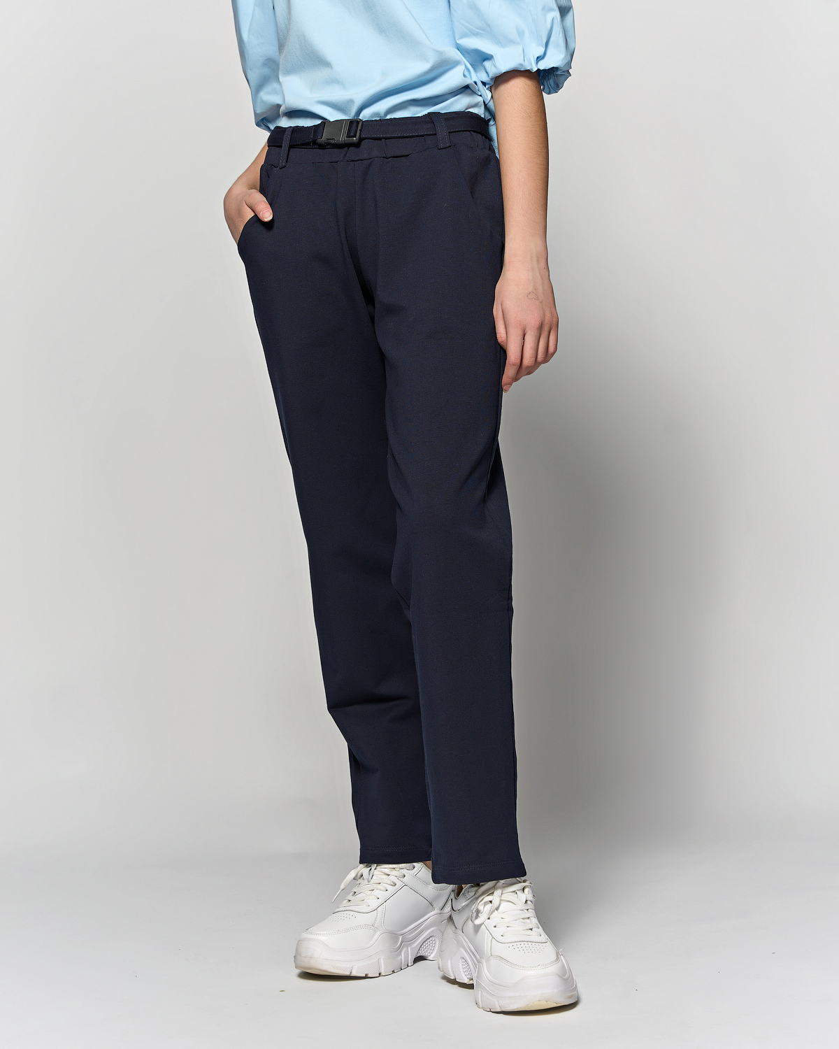 Трикотажные брюки Cegisa для девочек оптом. Комфортная посадка на талии за счёт эластичного пояса на резинке, крой свободный, слегка зауженный к низу. Модель дополнена ремнем.