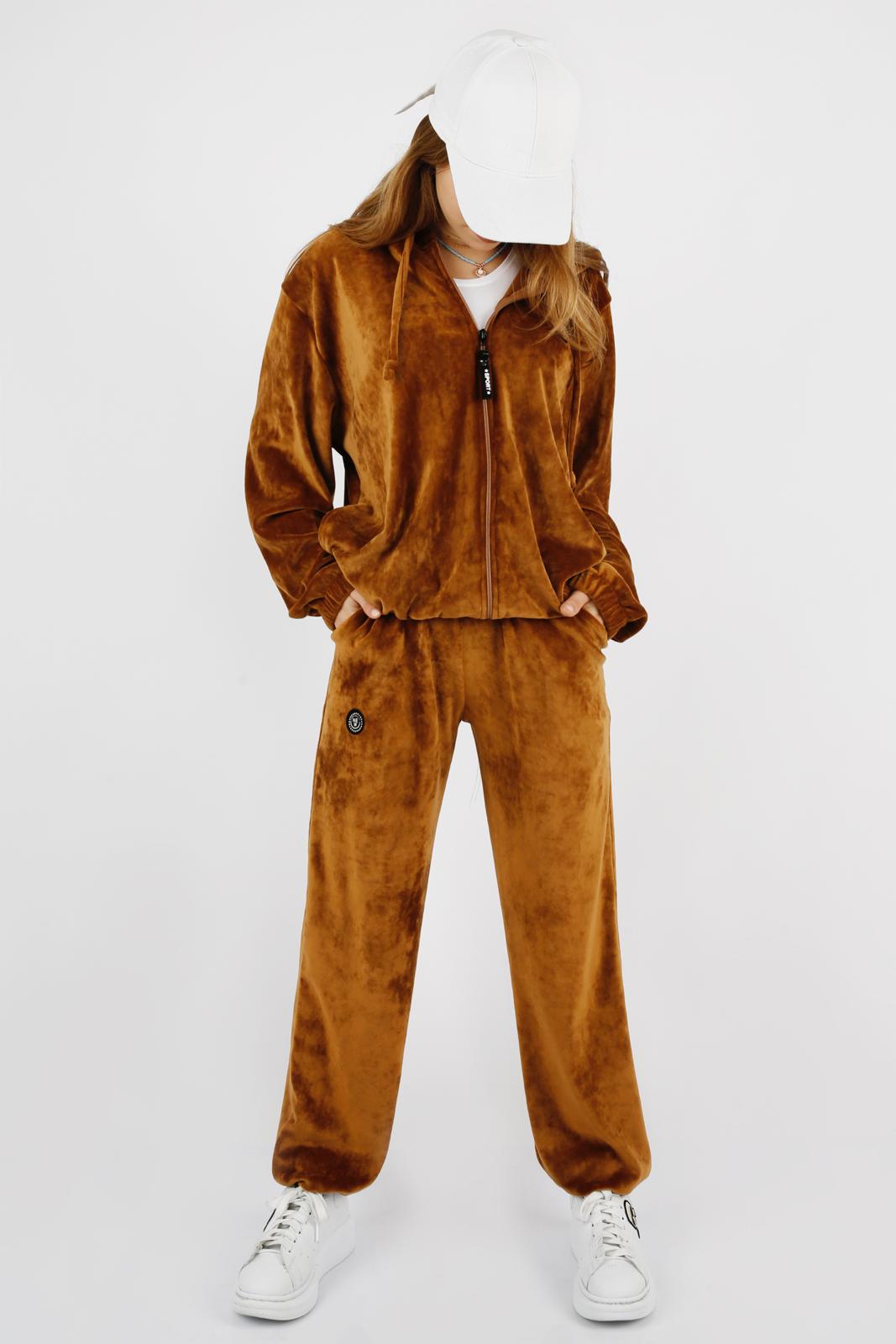 Костюм из велюра - прекрасный подарок в стиле спорт-шик. Велюровый костюм подходит для повседневной носки, прогулок, активного отдыха. Плюшевый костюм не сковывает движения во время физических упражнений. Костюм состоит из трех предметов-толстовка, топ и брюки.