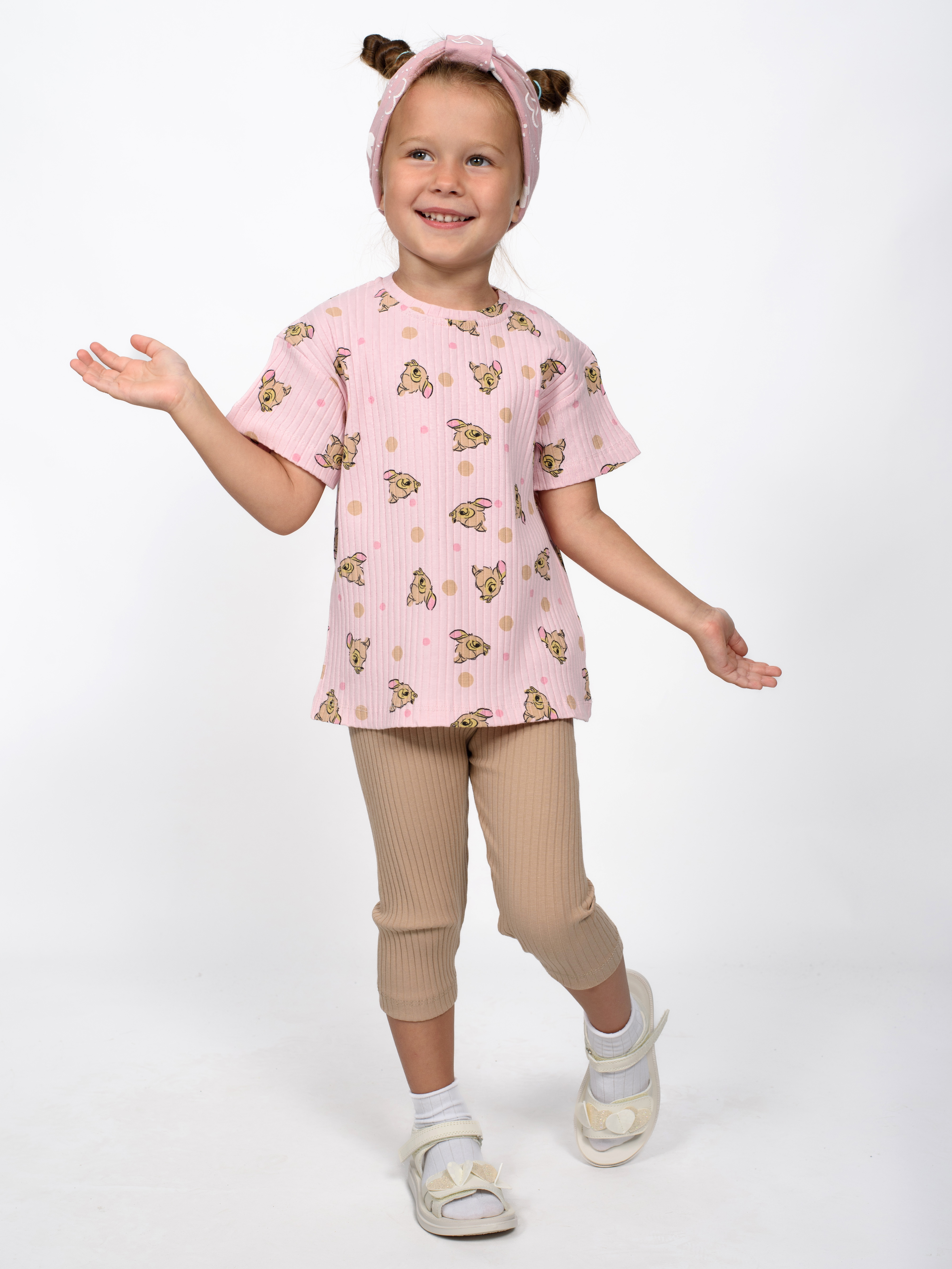 Практичный костюм TMK для девочки оптом состоит из футболки и лосин. Горловина футболки обработана эластичной бейкой. Лосины в поясе на резинке. Костюм изготовлен из хлопкового полотна лапша - нежного и мягкого, гипоаллергенного и легкого в уходе. Модель прекрасно подойдет для повседневной носки на улице или дома, для детского сада, а так же для активного отдыха и занятий спортом.