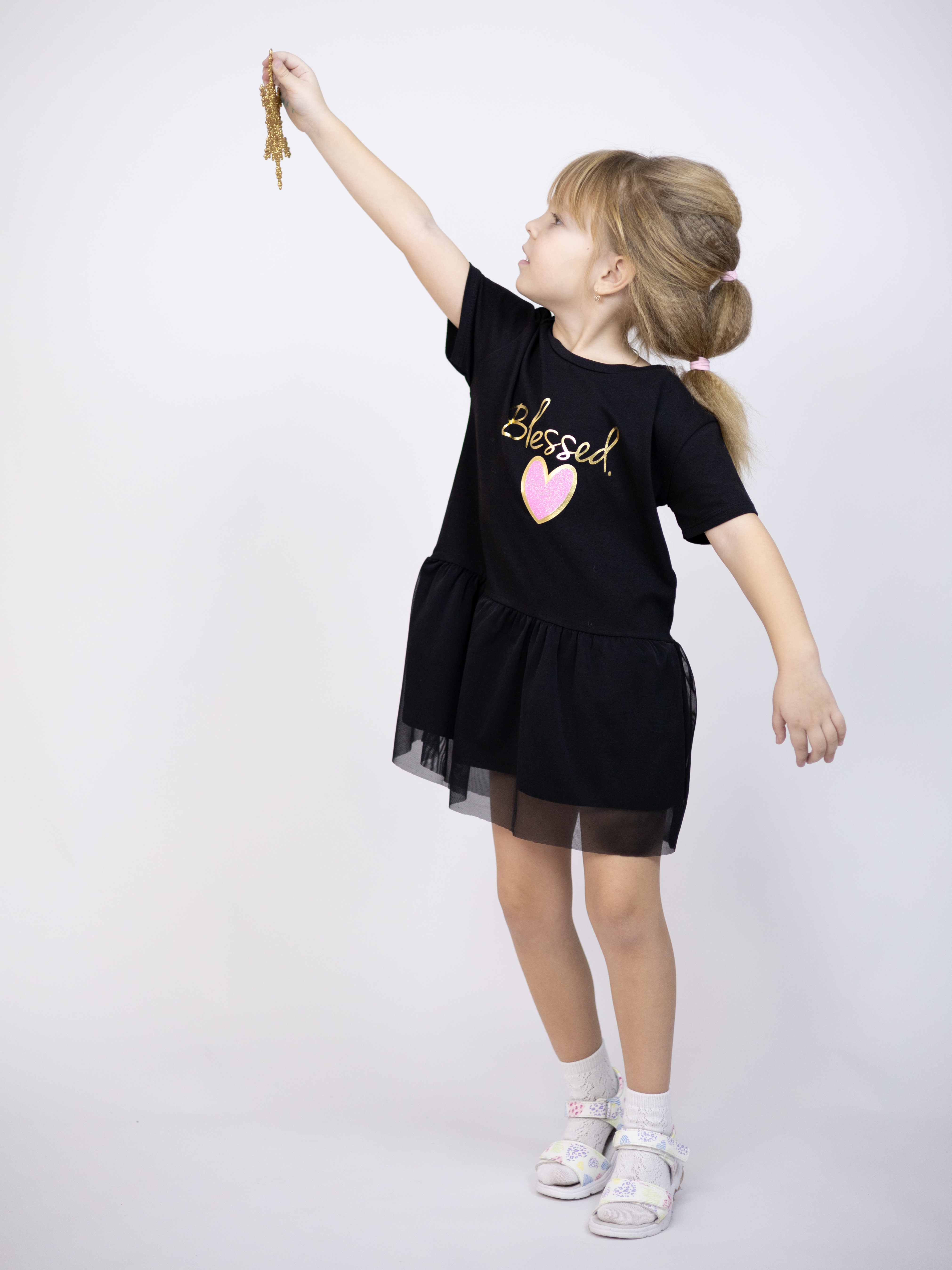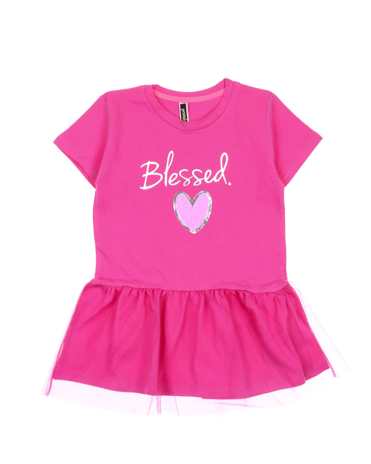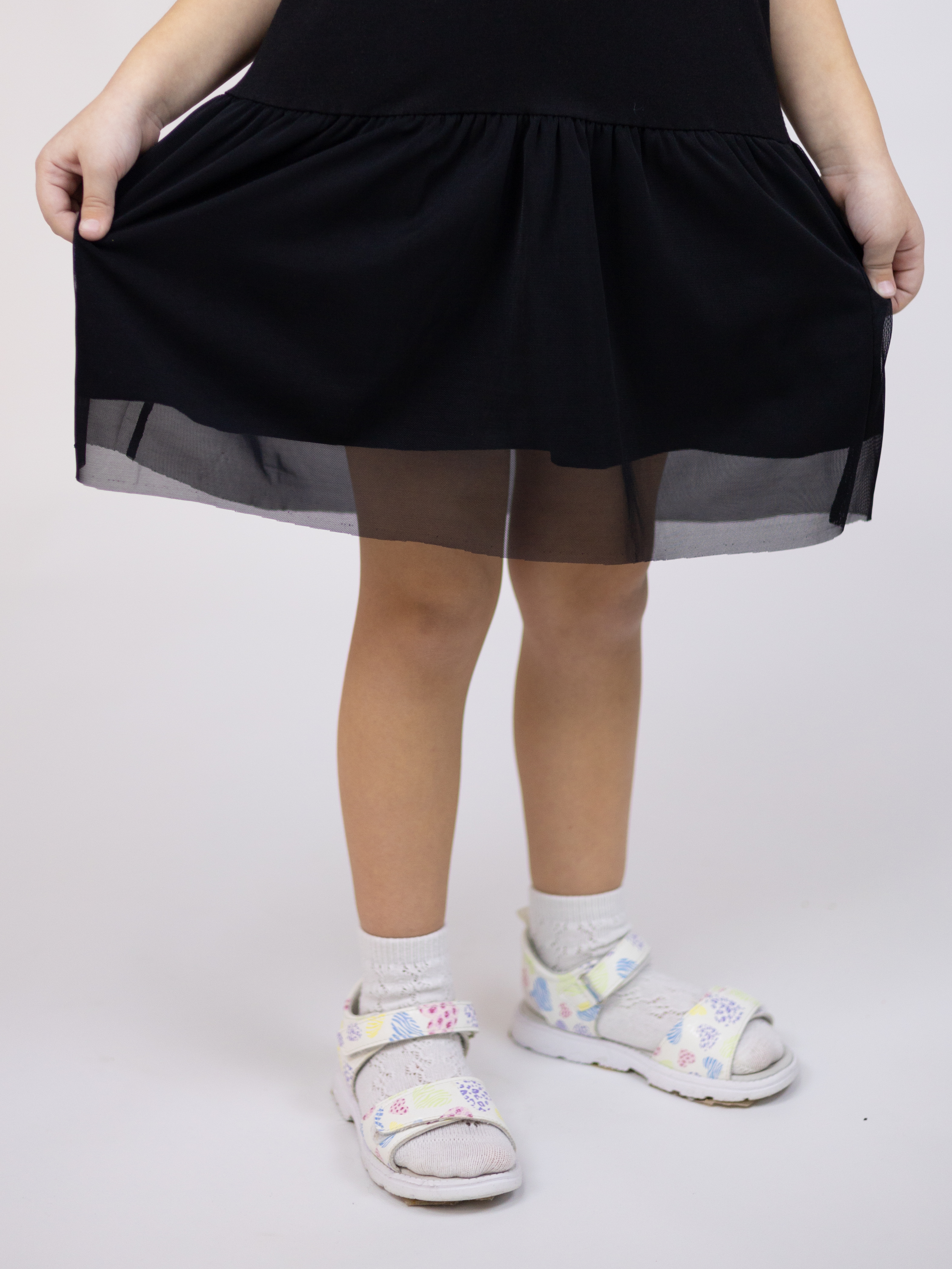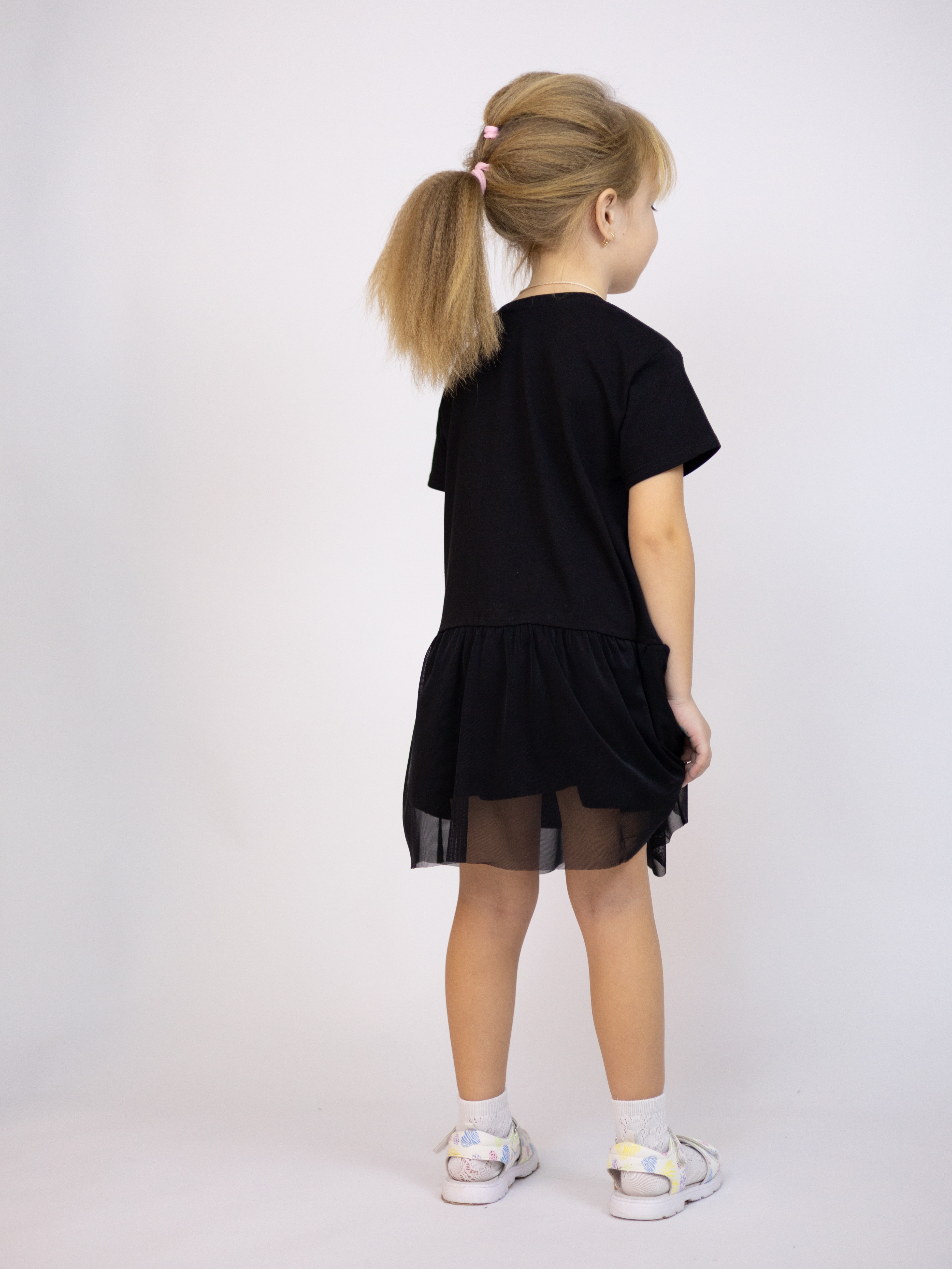 Туника YESMINA детская нужная вещь в гардеробе любой девочки. Футболка хлопковая декорирована принтом и отрезной юбкой с сеткой. Материал - плотное трикотажное полотно яркого цвета (95% хлопок 5% эластан). Ткань очень комфортна к телу и удобна в использовании, не теряет свои свойства даже после многократных стирок. Идеальна для детского сада, утренника, похода в гости, прогулок.