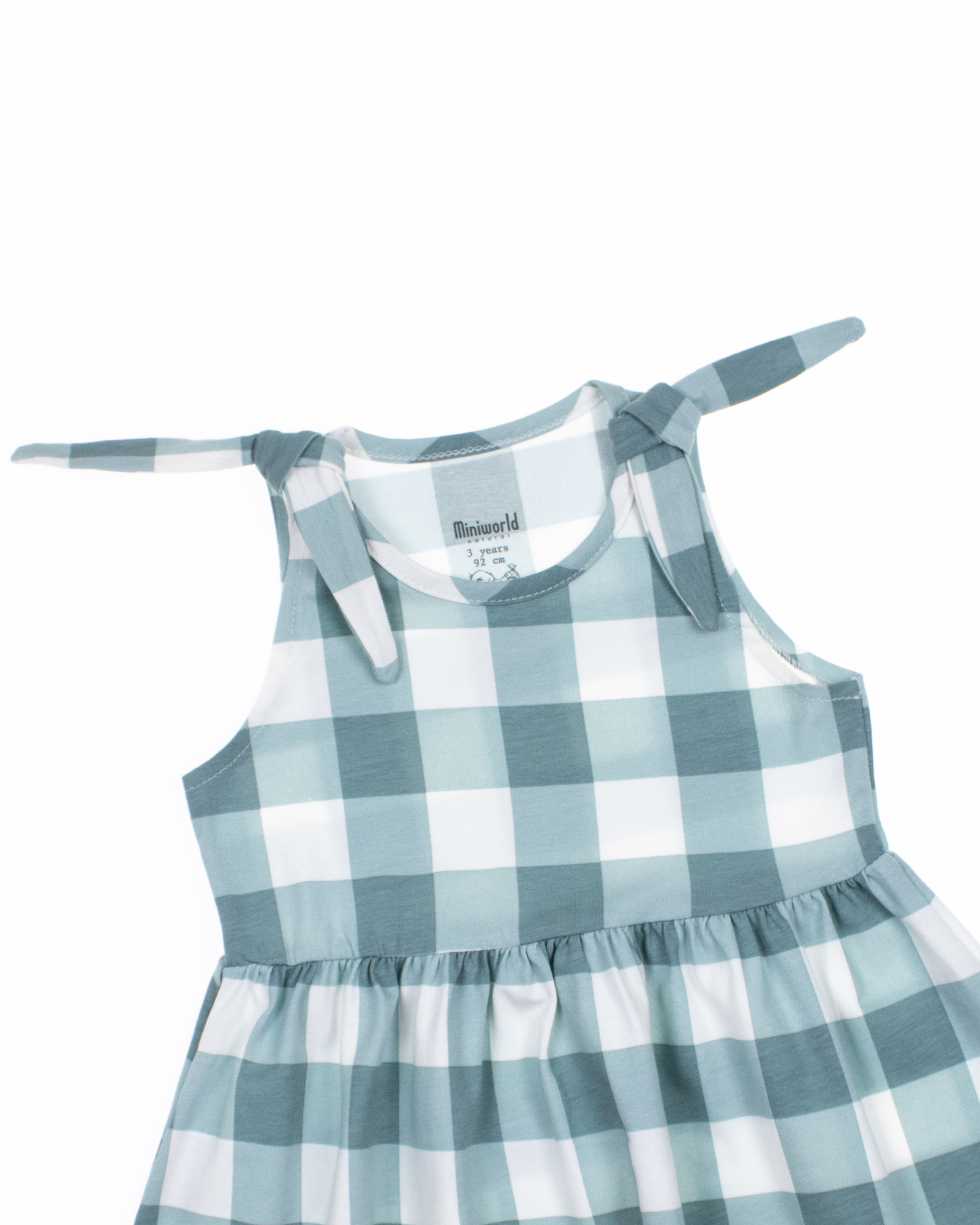 Летнее платье для девочки оптом, выполнено из эластичного хлопкового трикотажа. Платье без рукавов с декоративными завязками на плечах, расклешенное снизу.