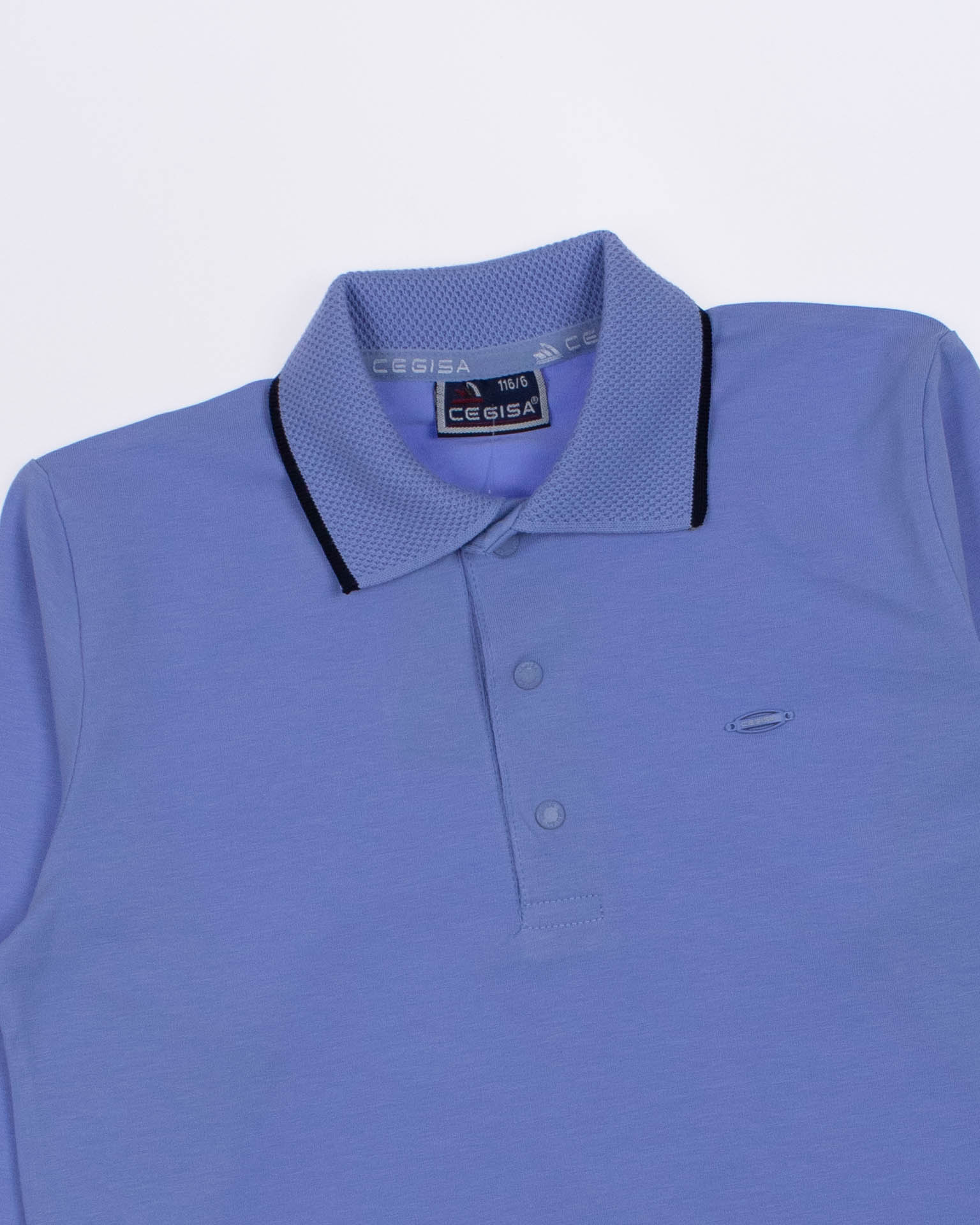 Детское однотонное поло Cegisa для мальчика оптом. Поло прямого силуэта имеет застежку- кнопки, вязаный отложной воротничок, рукава оформлены манжетами.