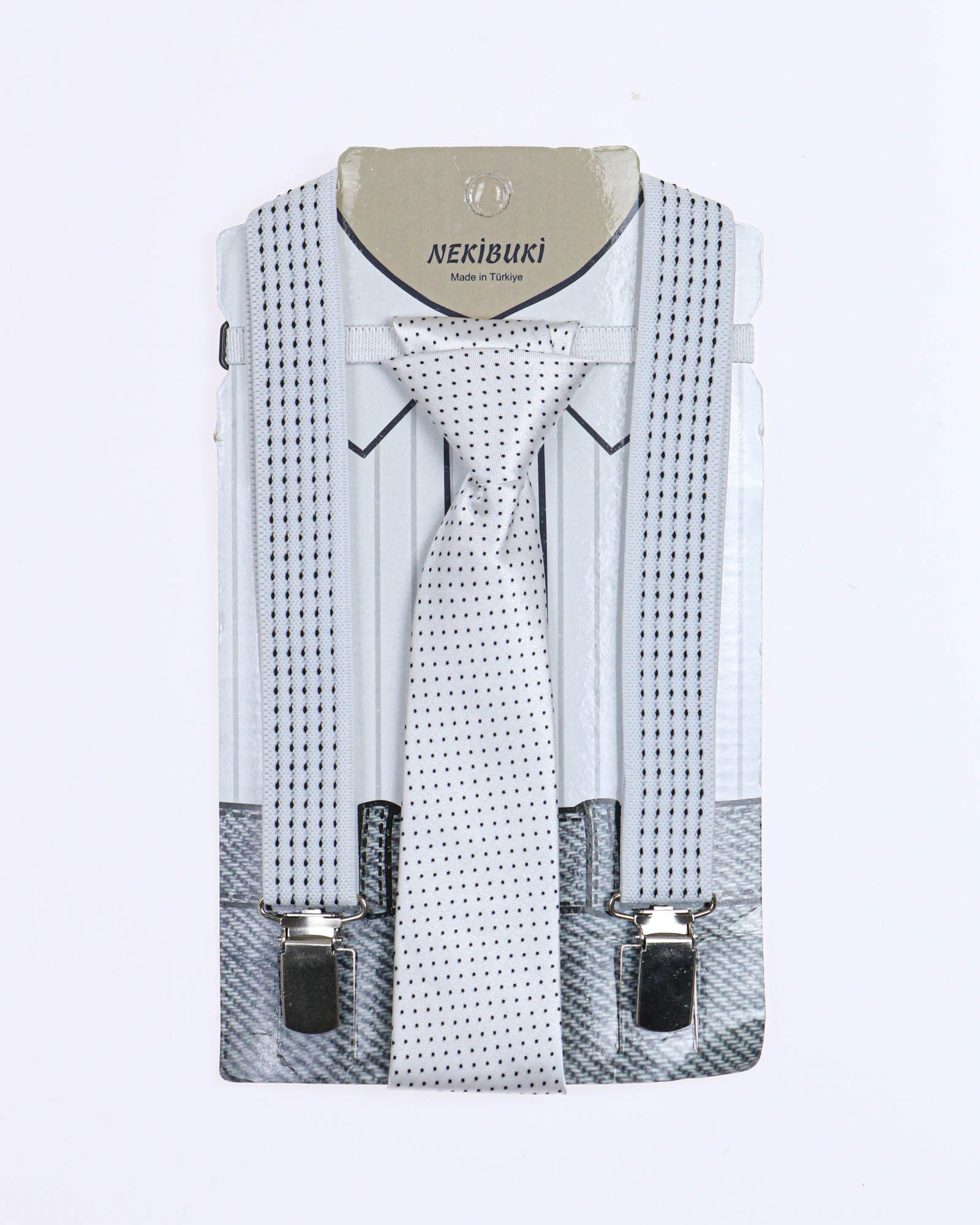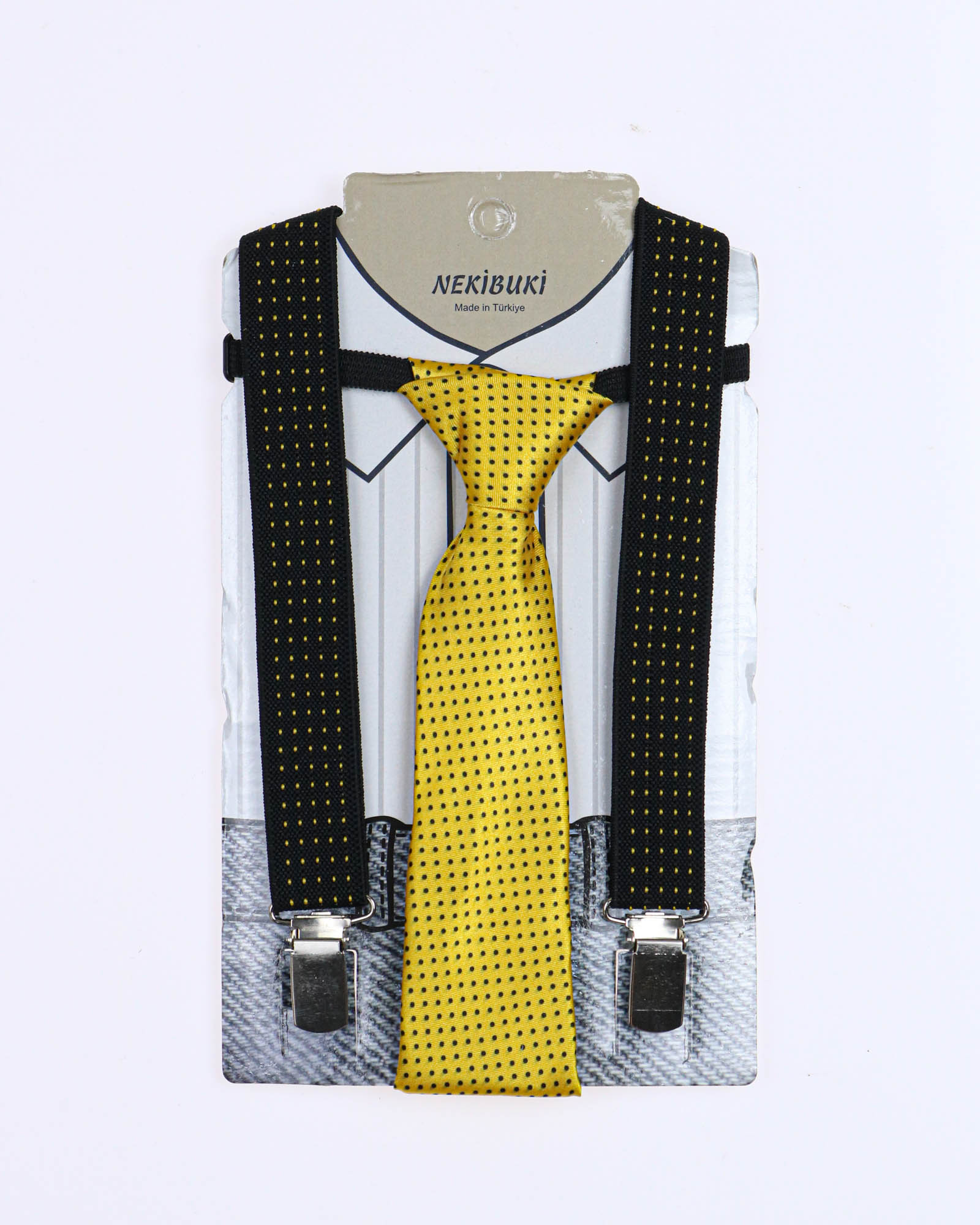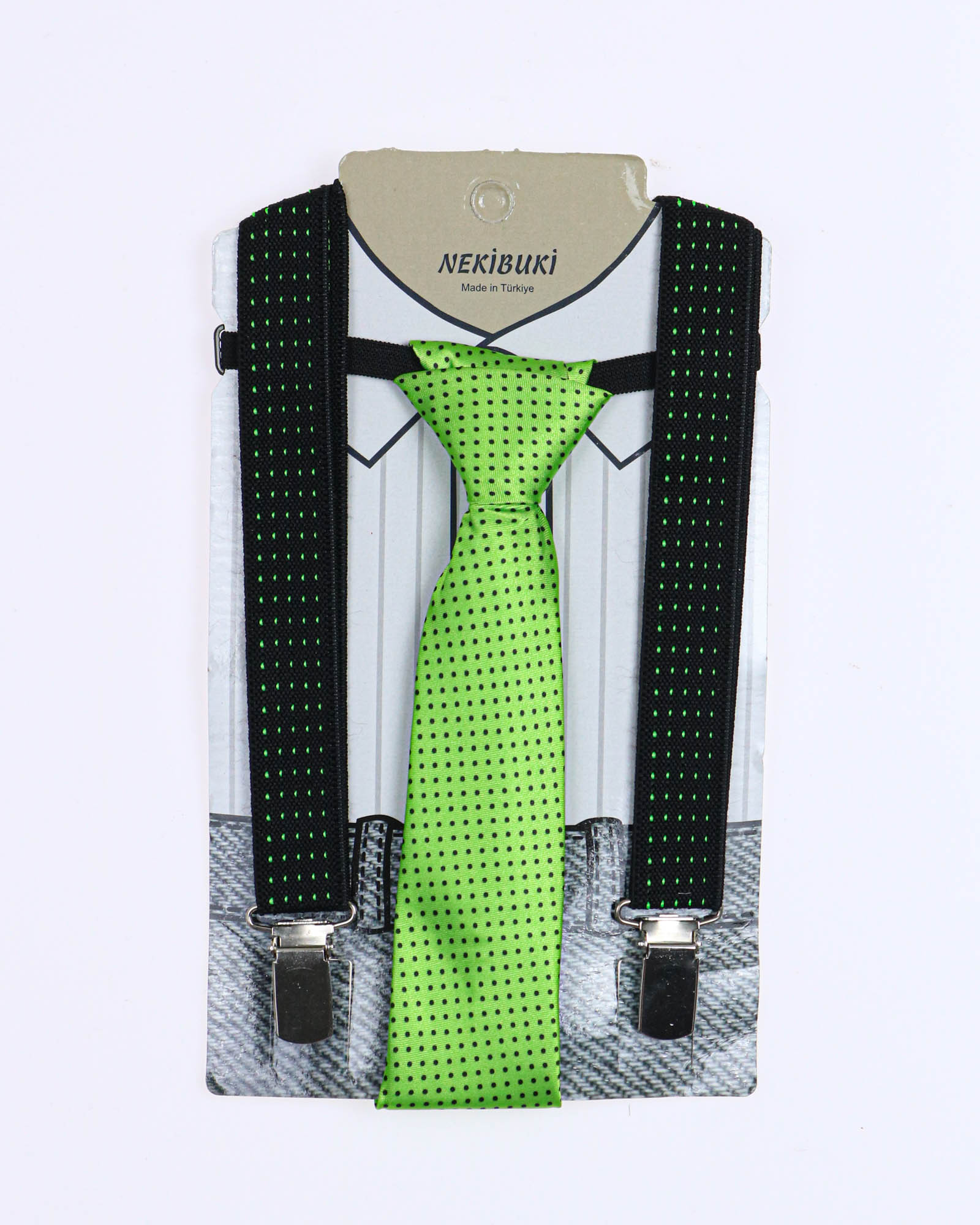 NEKIBUKI 1071 Набор подтяжки + галстук (цвет: Черный\салатовый)