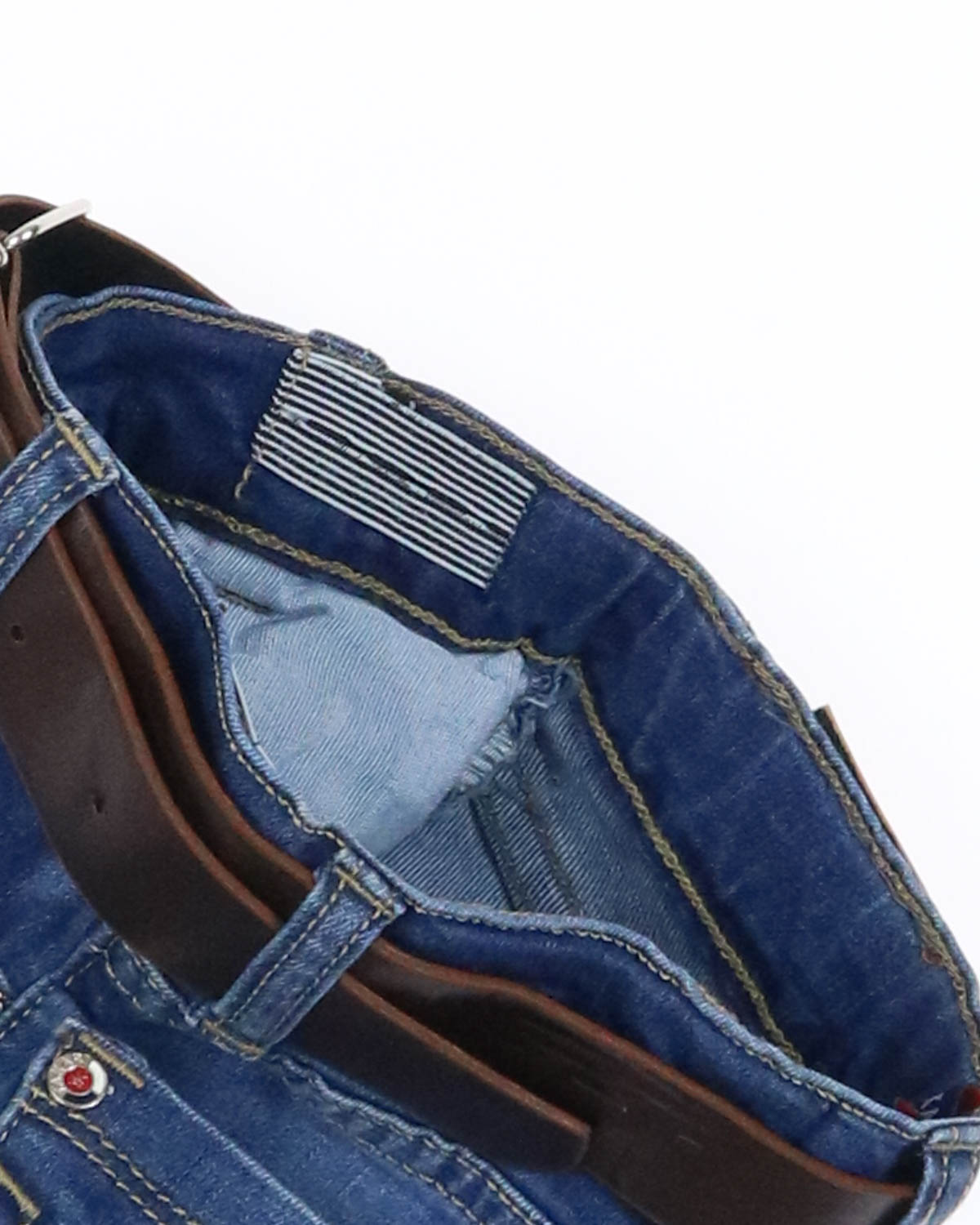 Классические джинсы синего цвета для мальчиков с добавлением эластана в классическом крое. Посадка талии средняя. Внутри на поясе есть регулятор талии.