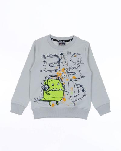 Свитшот  прямого кроя с  принтом, пояс и рукава на манжетах. Такой аксессуар одежды станет незаменимым спутником в прохладноый день. Отличный вариант на каждый день. Натуральная, дышащая ткань очень удобна и практична в носке. Не растягивается и не деформируется. Идеально подходит для прогулок, в детский сад, и даже в гости. Для сохранения первоначальных свойств изделия, очень важно соблюдать рекомендации по уходу за изделием, указанные на ярлычке. Товар сертифицирован. Модель выполнена из трикотажа футер (петля).