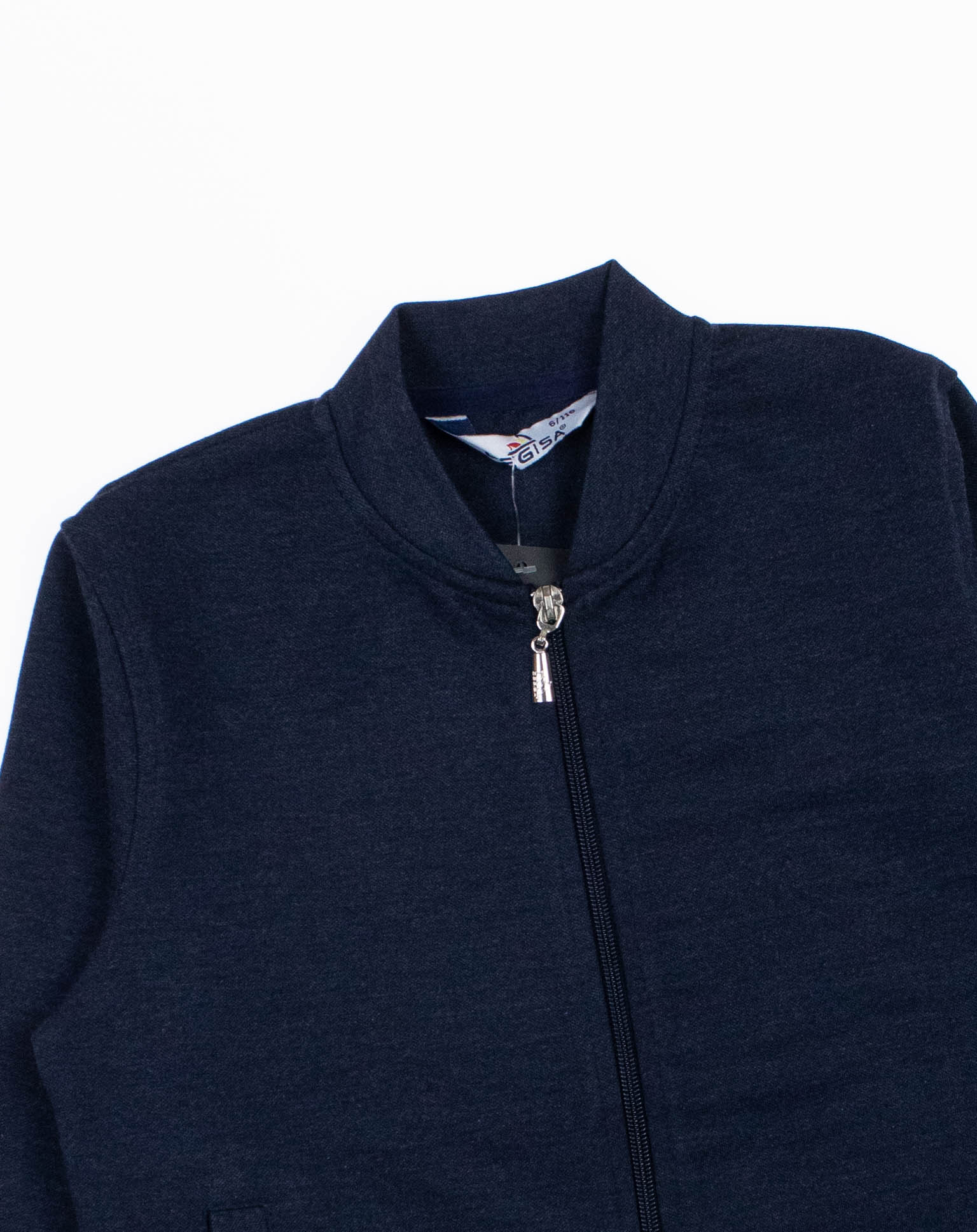 Трикотажный бомбер CEGISA для мальчика оптом. Выполнен из смесовой ткани, в составе которой натуральный хлопок с  добавлением полиэстера. Воротник стойка. Низ изделия и рукава на трикотажном манжете. Вместительные карманы и разъемная застежка - молния. Хорошо сохраняет цвет и форму при длительной носке и после многократных стирок. Прекрасно будет смотреться как школьная форма.