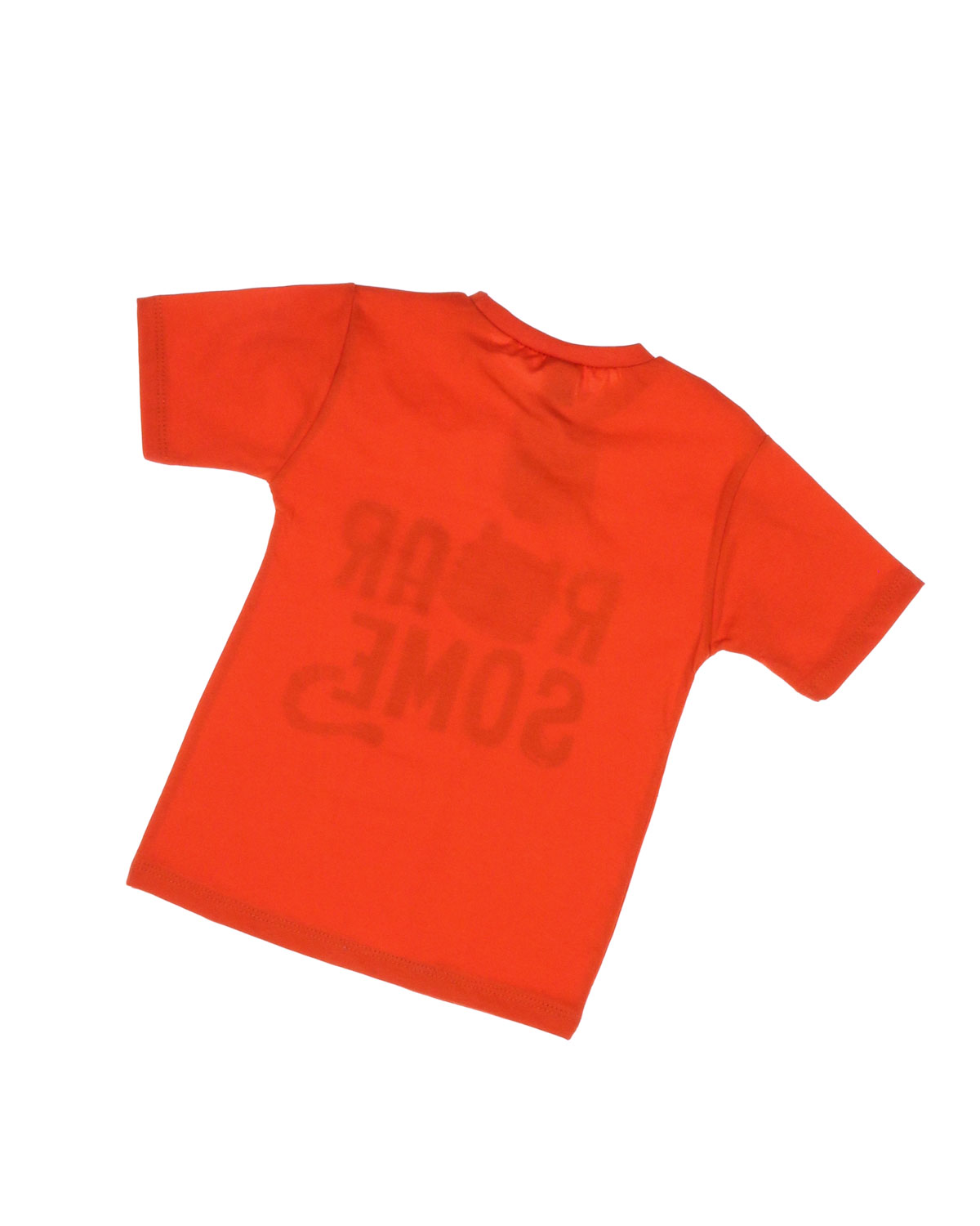 Костюм для мальчика, состоит из футболки и шорт. Модель выполнена из хлопкового полотна и оформлена печатным принтом. Футболка прямого кроя, с округлым вырезом горловины. Ткань кулирная гладь.