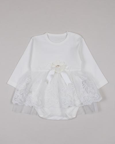 Платье-боди с длинными рукавами для малышей очень комфортно в использовании, не стесняет движений. Изготовлено из 100% хлопка. Застежка на спинке и снизу позволит в считанные секунды переодеть малышку.