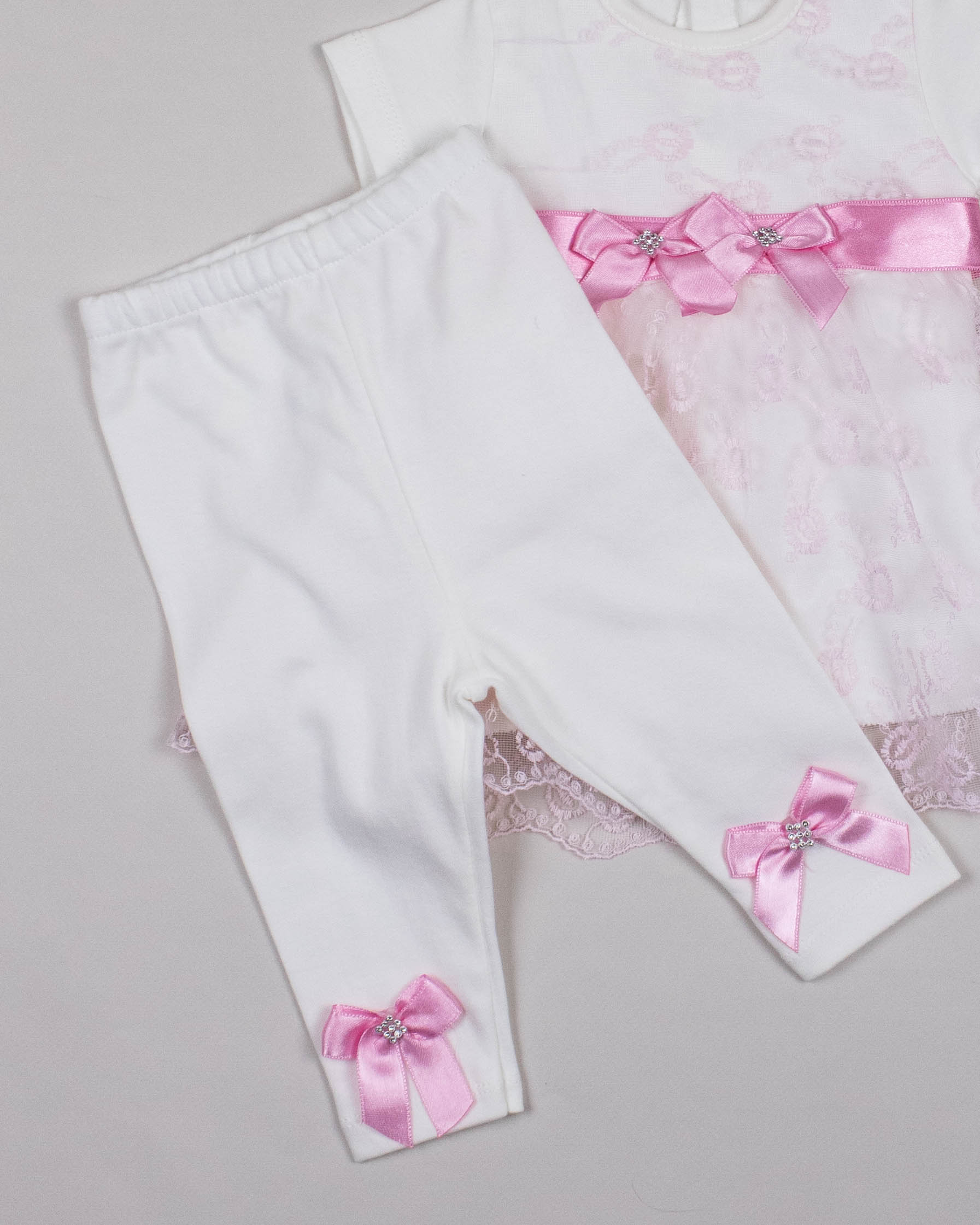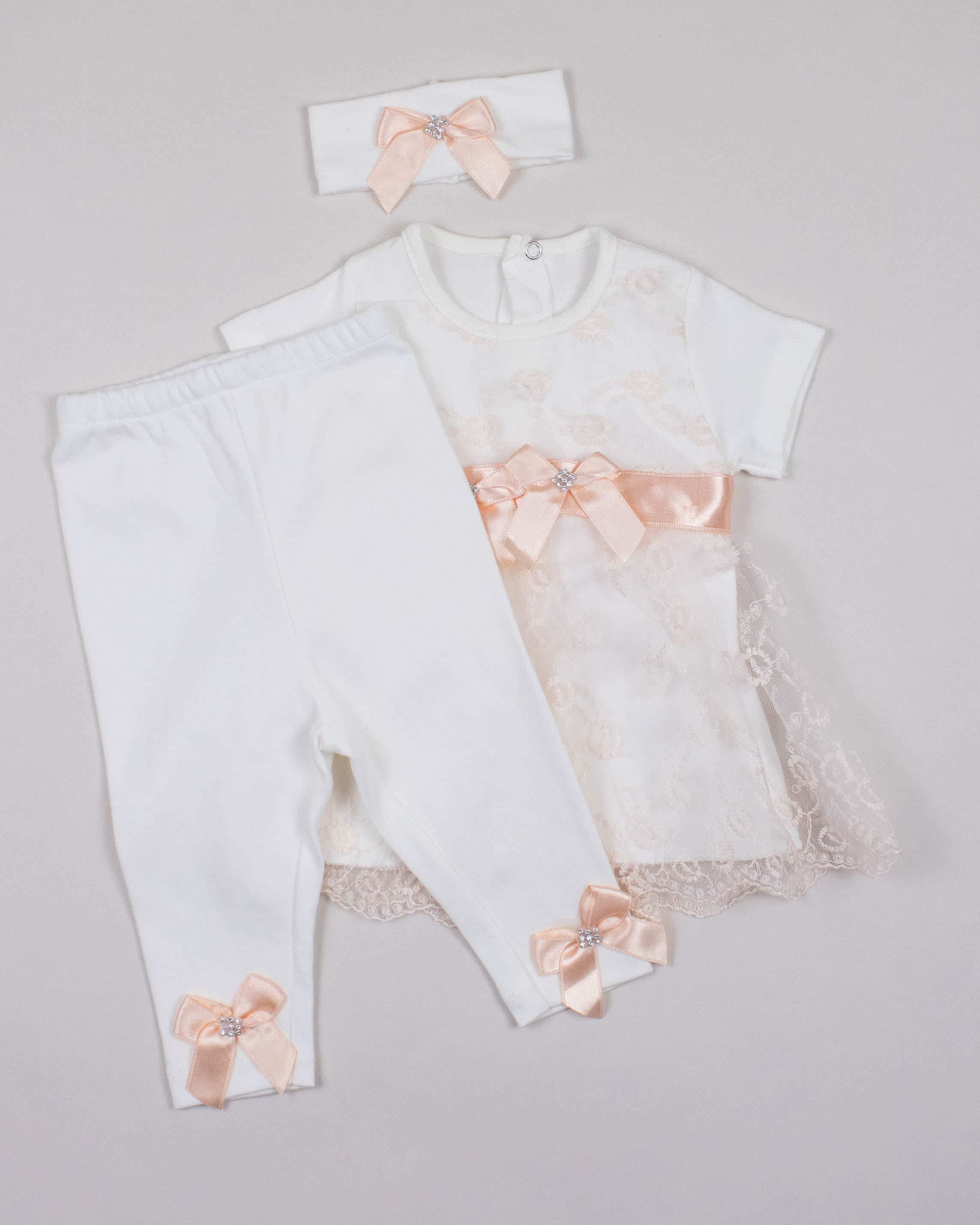Комплект FINDIK оптом для новорожденного изготовлен из 100% хлопка с отделкой из сетки с вышивкой и декором из страз.