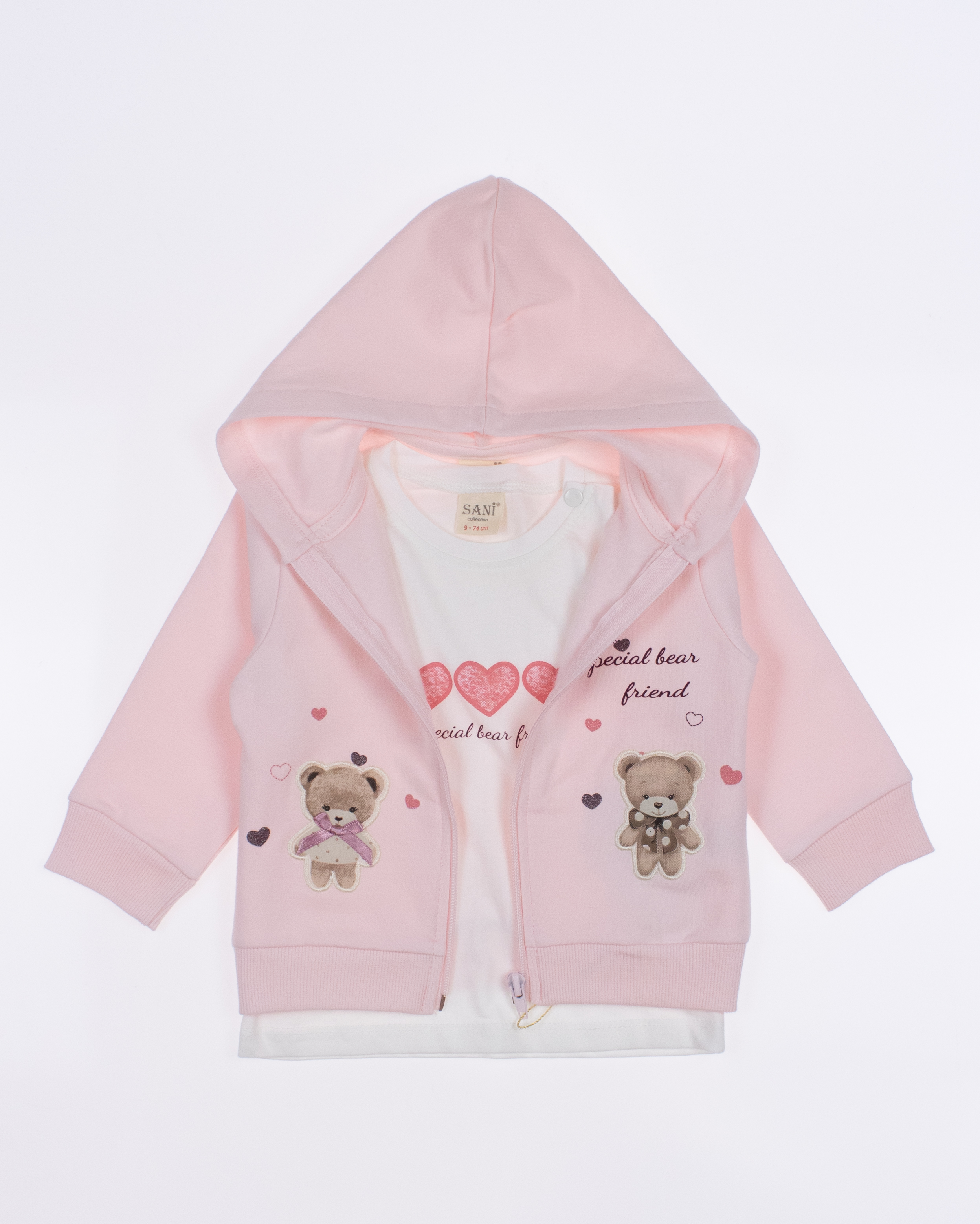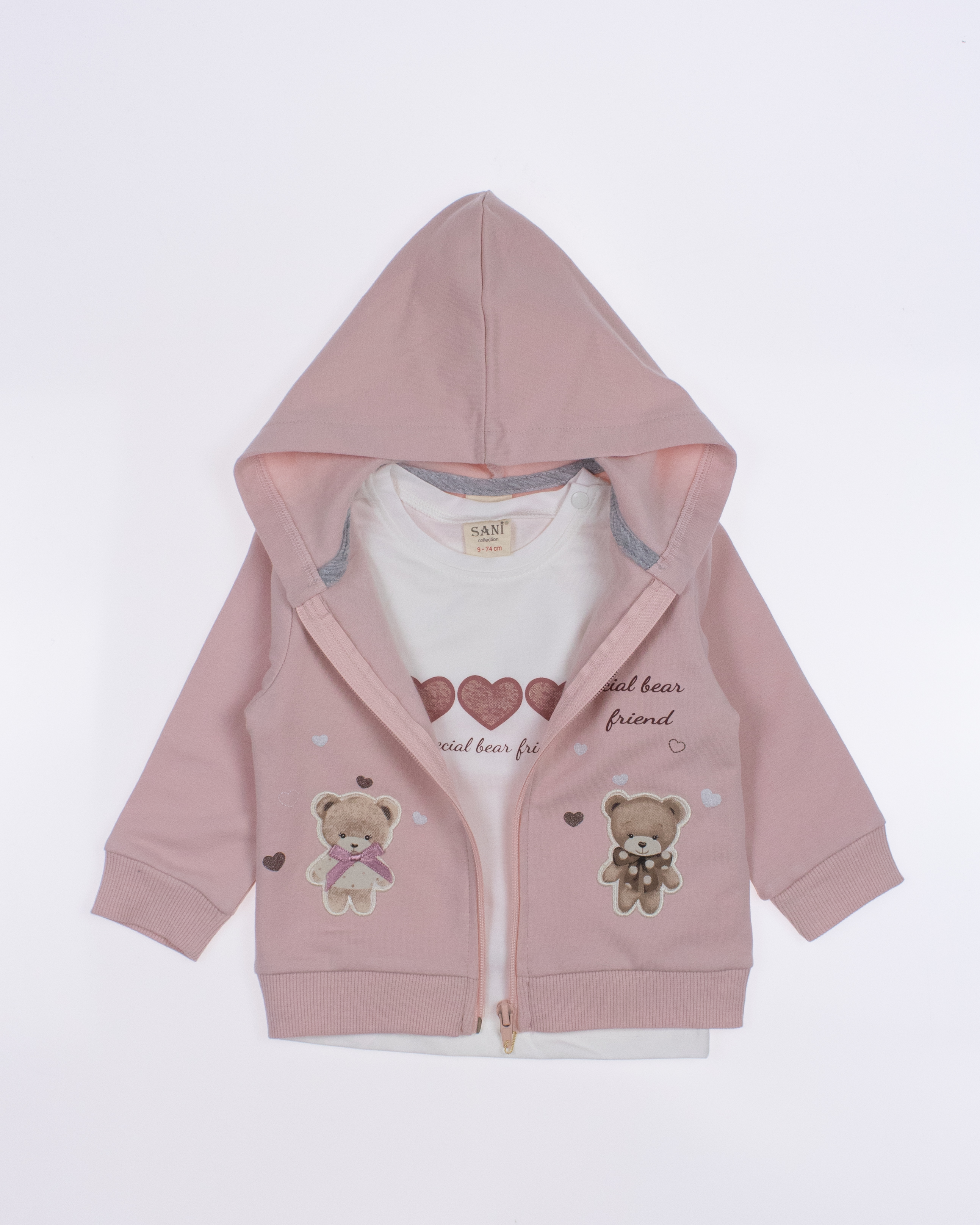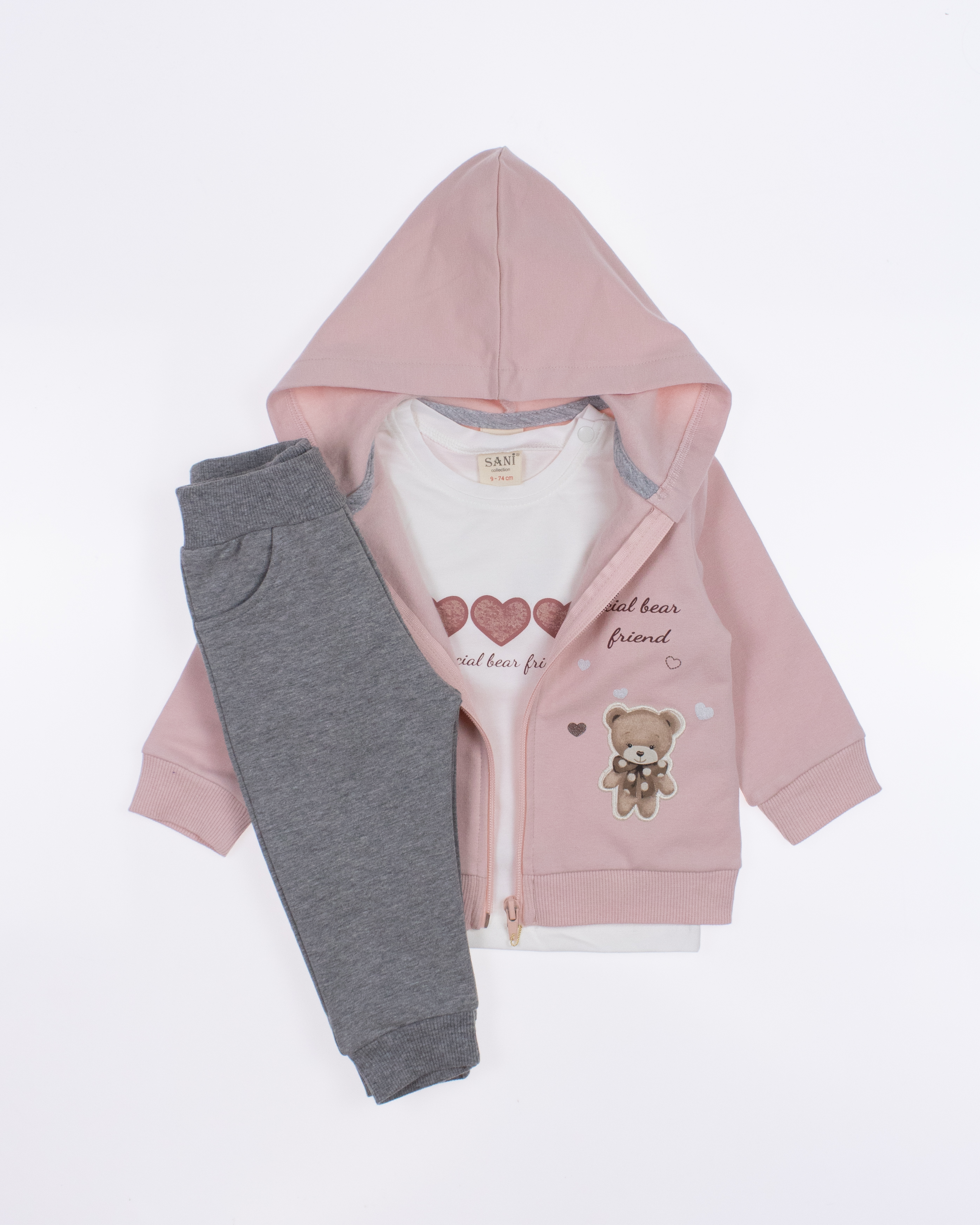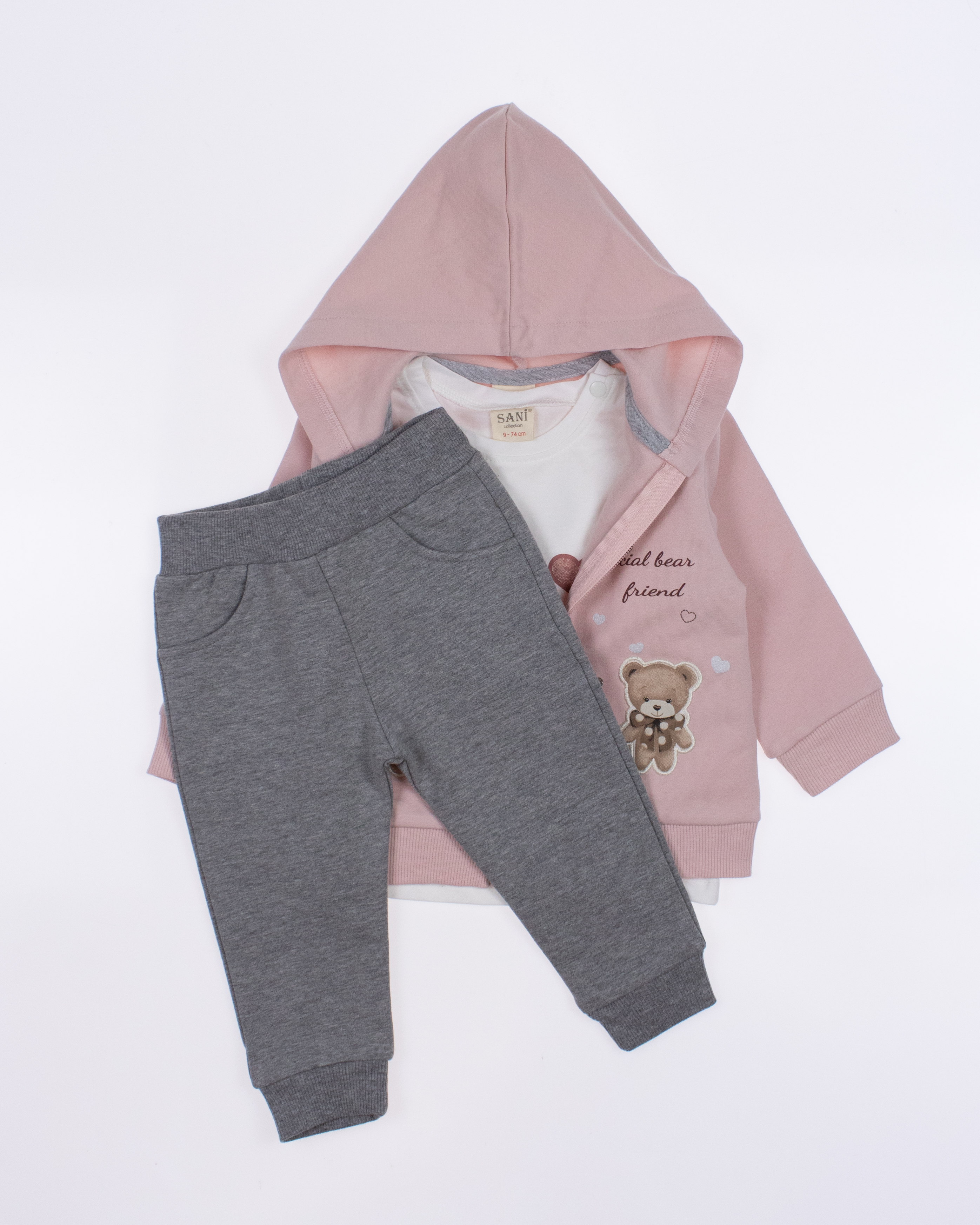 Теплый спортивный ясельный костюм оптом— это идеальный выбор для  маленькой модницы. Он состоит из трех стильных предметов, которые обеспечивают как комфорт, так и опрятный внешний вид. Костюм выполнен из качественного трикотажа  с начесом.