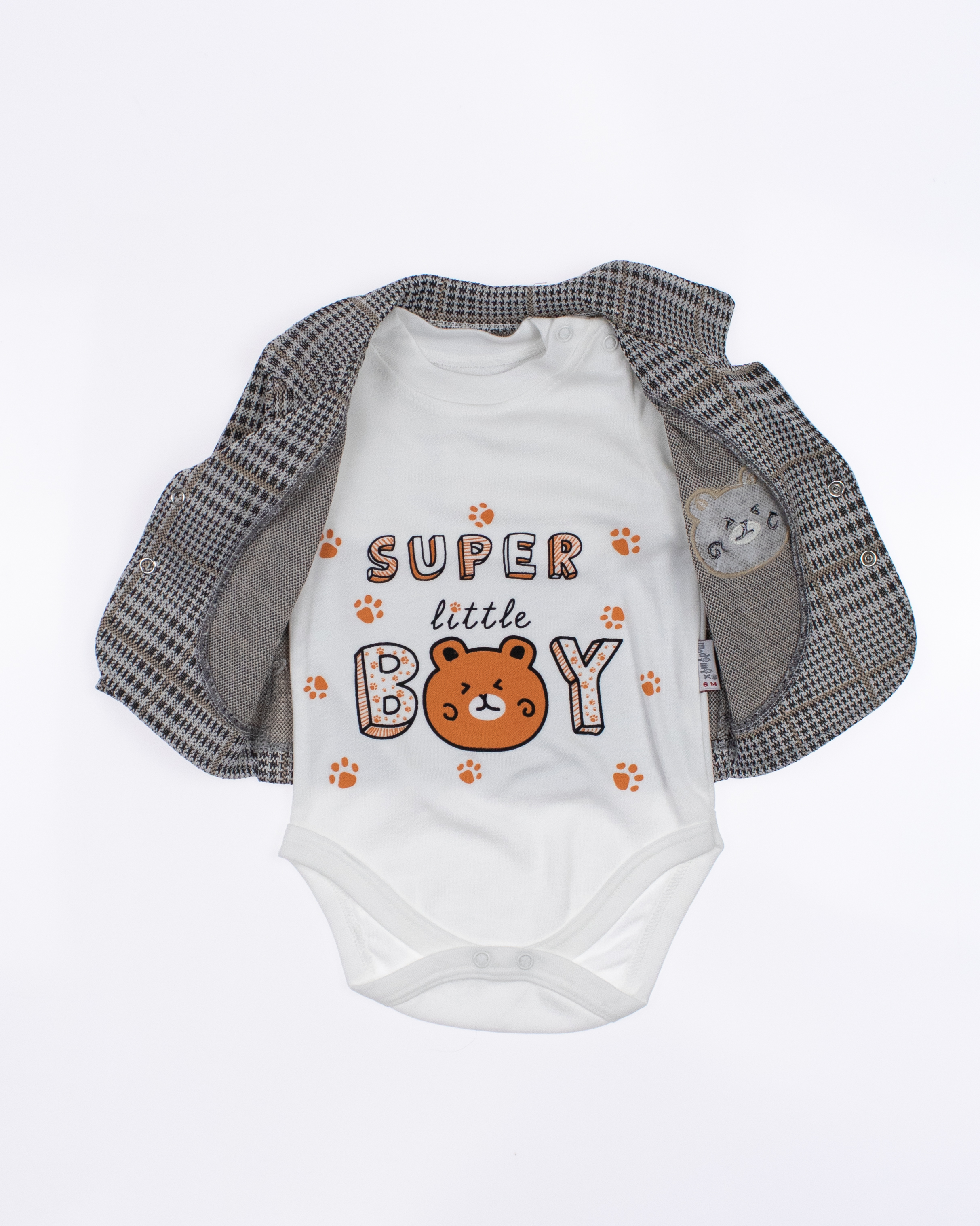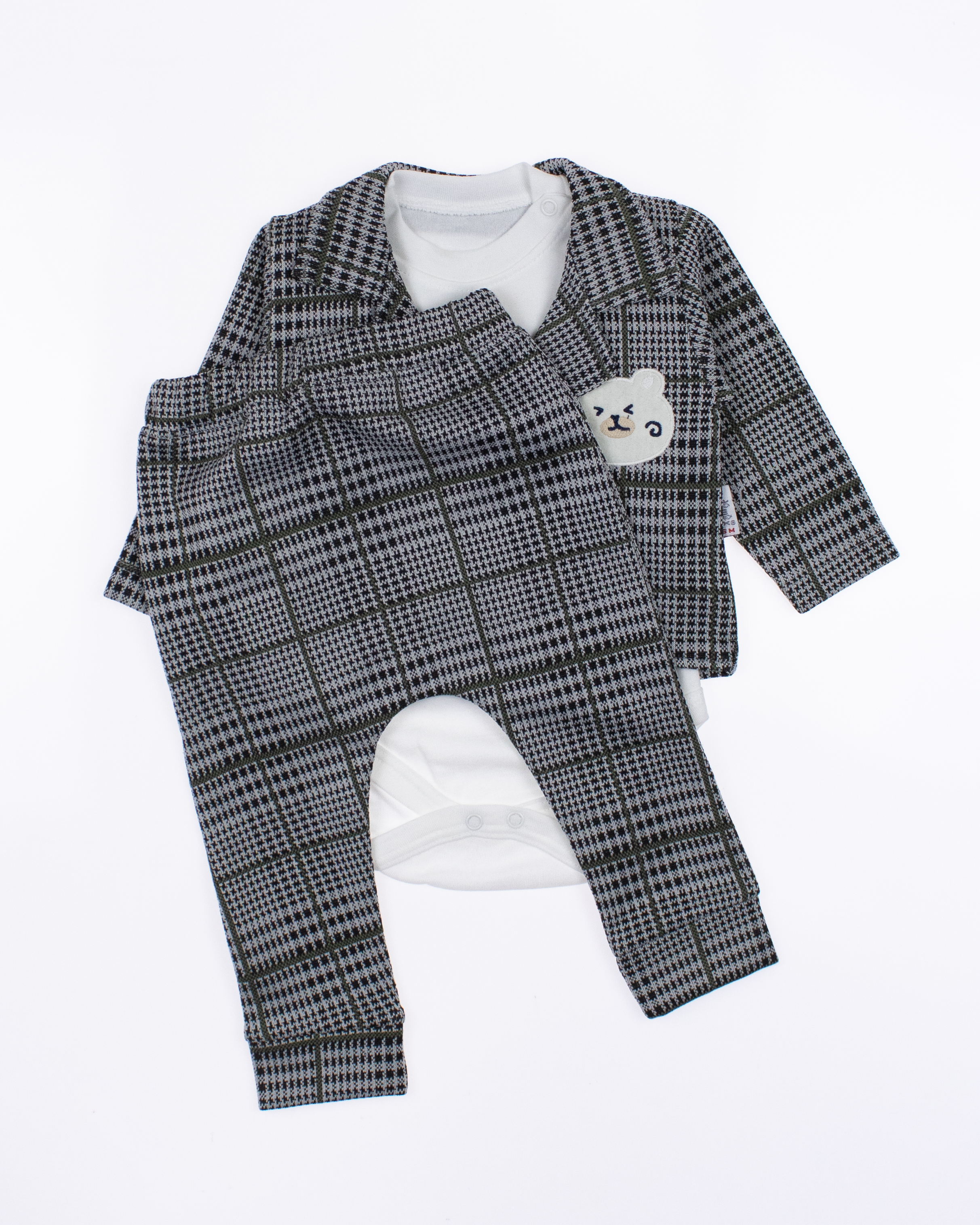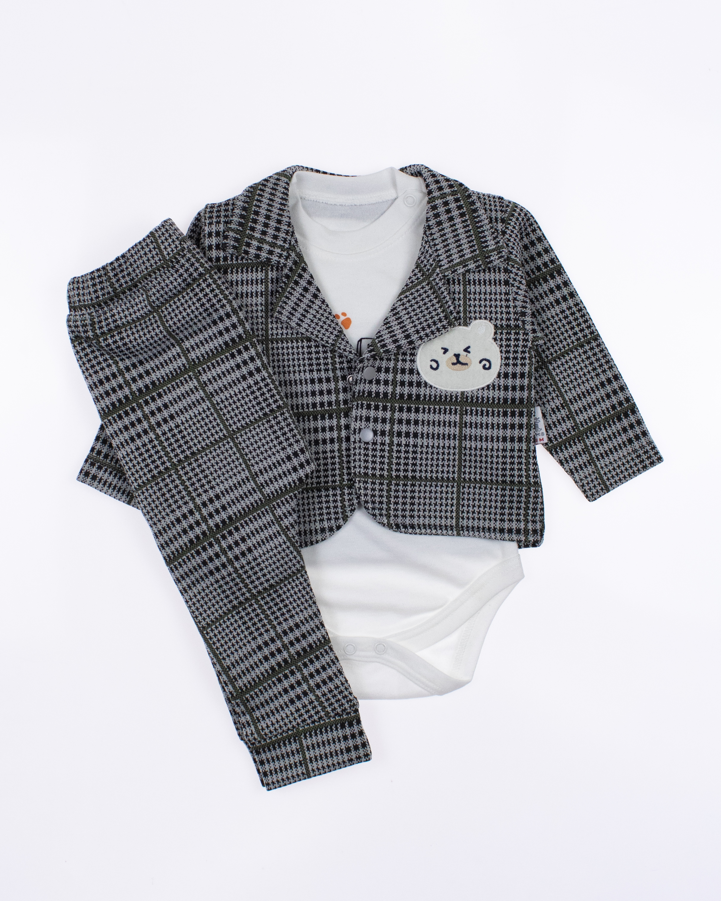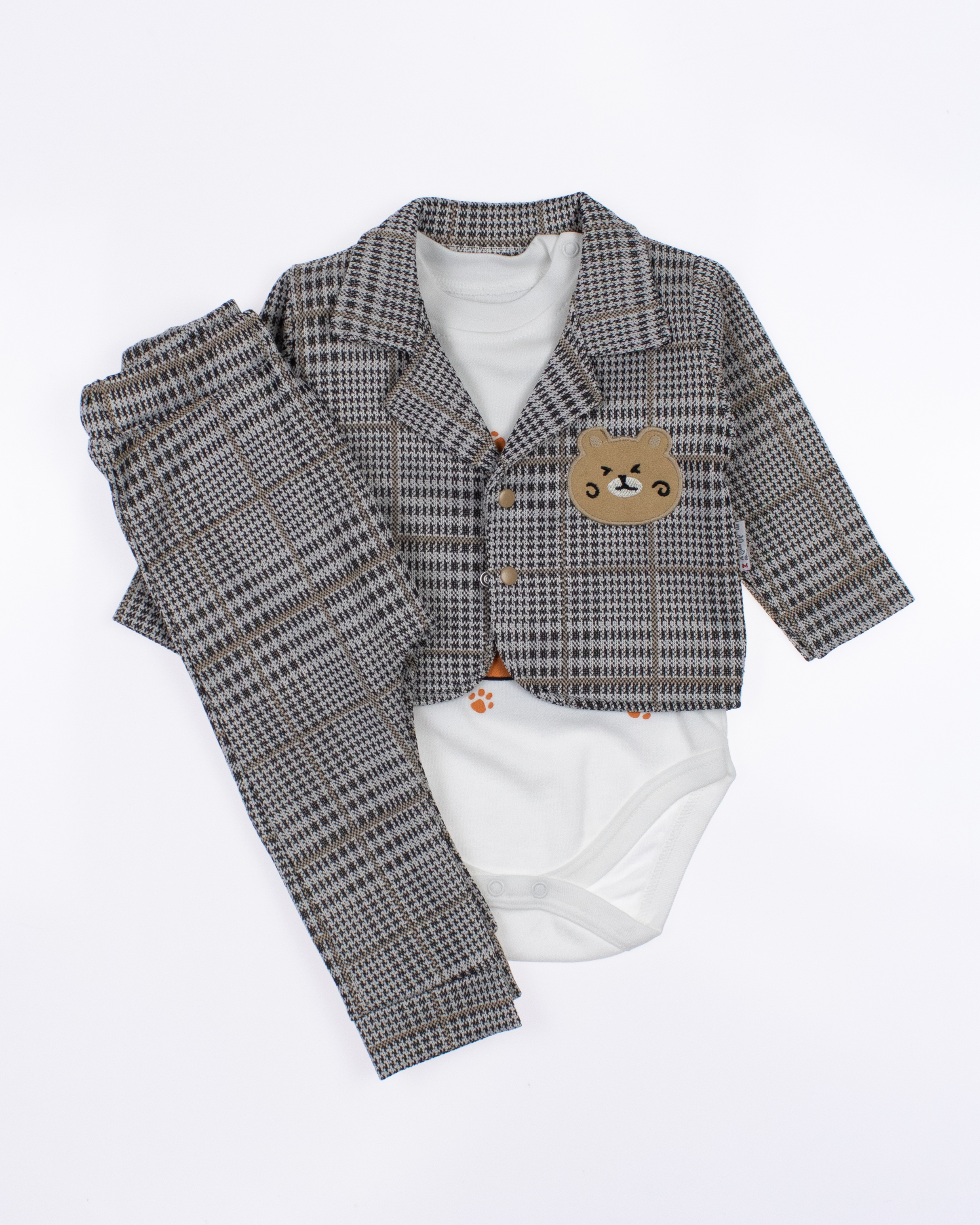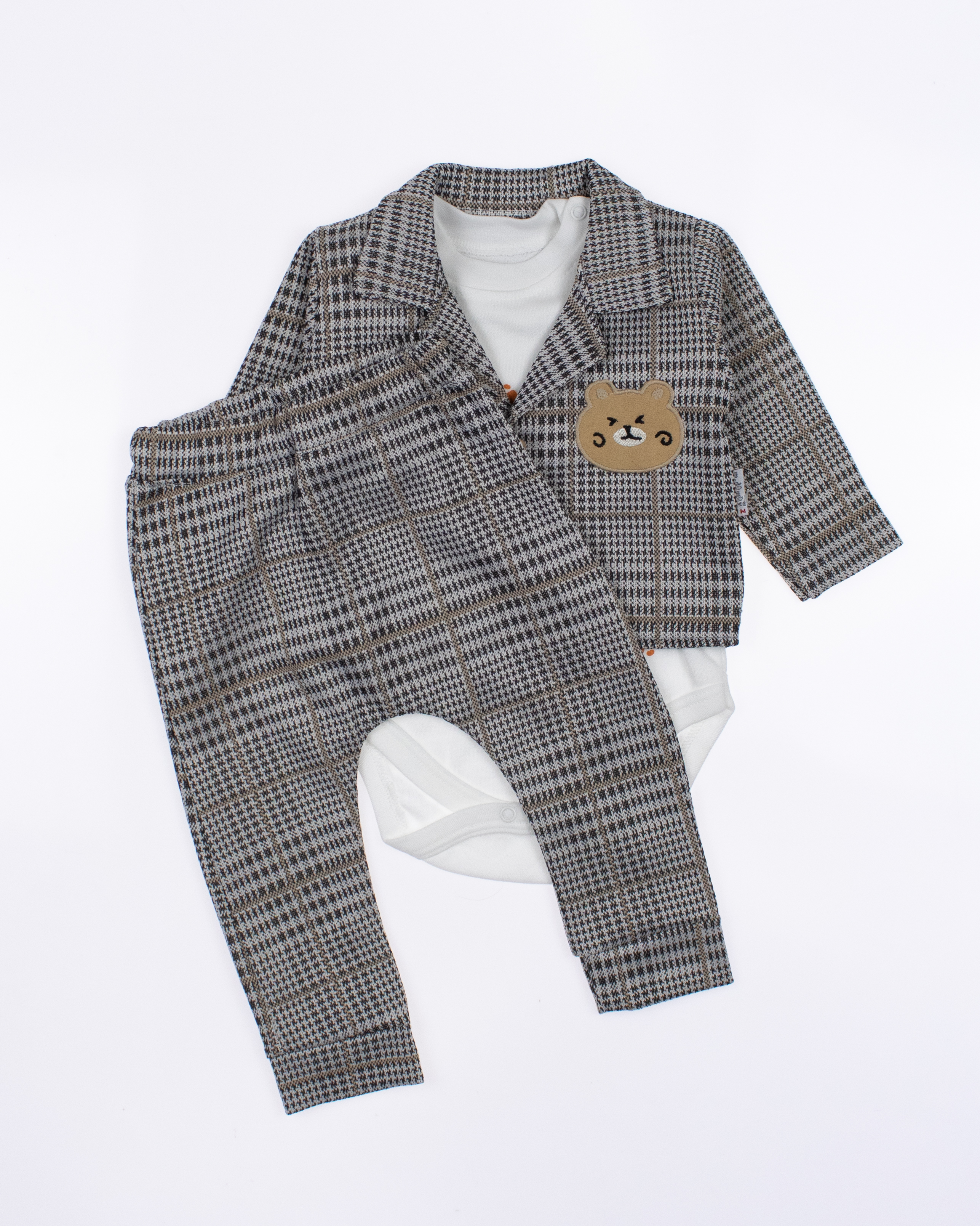 Костюм ясельный от MODIMIX - идеальный выбор для самых маленьких модников! В комплект входит три незаменимых предмета: трикотажный пиджак, стильные штанишки и практичное боди с длинным рукавом. Все изделия выполнены из качественных и гипоаллергенных материалов, что обеспечивает комфорт и безопасность для чувствительной кожи малышей. Производитель MODIMIX, завоевавший доверие родителей своим вниманием к деталям и высоким стандартам качества, гарантирует долговечность и привлекательный внешний вид его продукции. Костюм отлично подходит  для особых случаев. Интернет-магазин Tamrikoshop предлагает этот замечательный товар по оптовым ценам, что делает его доступным для всех желающих. Не упустите возможность порадовать своего малыша стильной и удобной одеждой! Заходите на сайт, чтобы выбрать свой идеальный комплект и сделать покупку с выгодой!