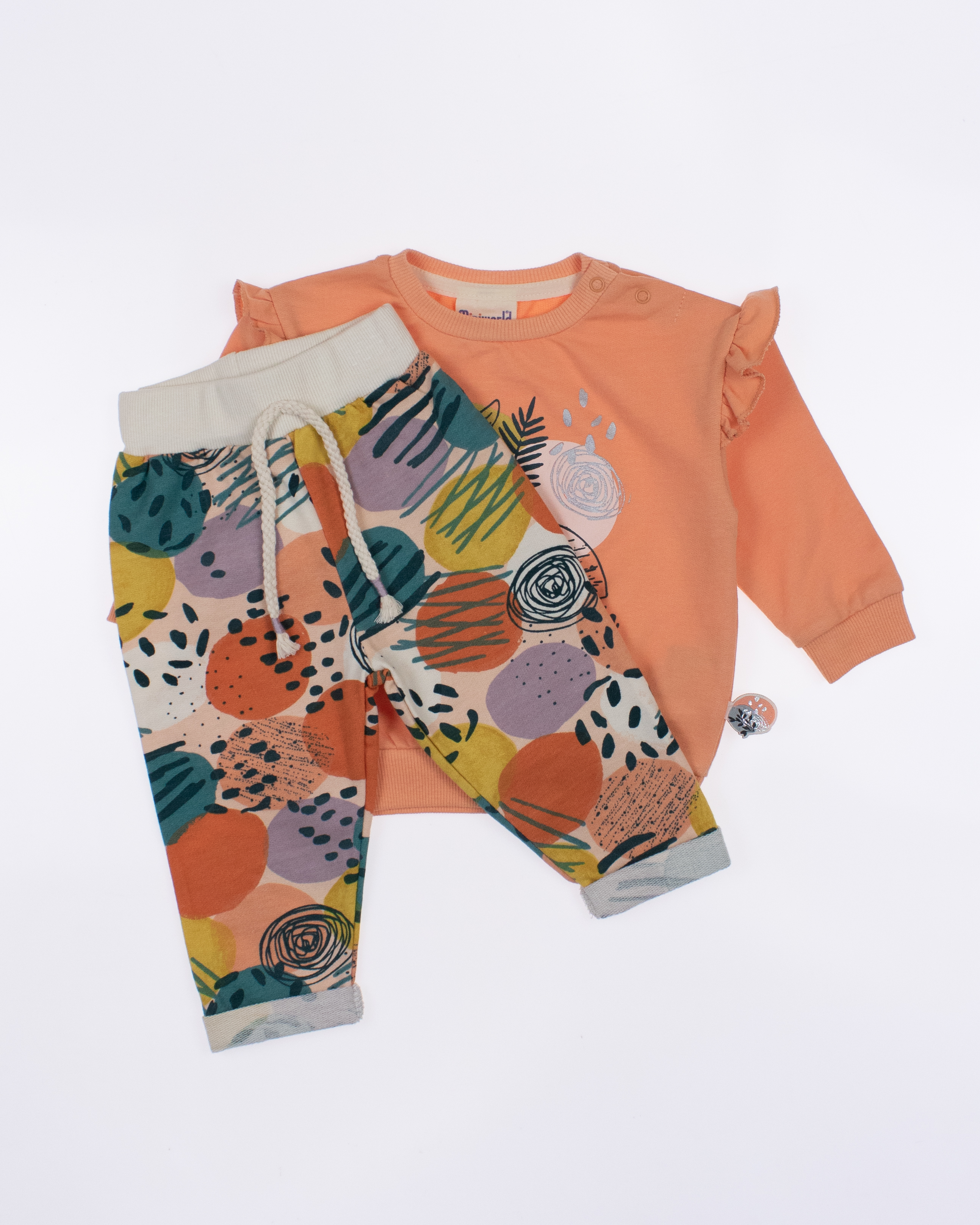 Мы предлагаем оптовые продажи детской одежды производства Турция. Хлопковый костюм MINIWORLD выполнен из 100% хлопка, что гарантирует комфорт и безопасность для самых маленьких детей. Свитшот имеет удобную застежку-кнопки на плече, что облегчит процесс надевания и снятия одежды. Штанишки с мягкими манжетами на эластичном поясе идеально подходят для ношения с подгузником, обеспечивая свободу движений и комфорт. Детский милый принт на костюме поможет развить фантазию и воображение ребенка, делая его образ ярким и запоминающимся. Костюм MINIWORLD - отличный выбор для маленьких модников и их заботливых родителей. Не упустите возможность приобрести этот уникальный товар оптом по выгодной цене!