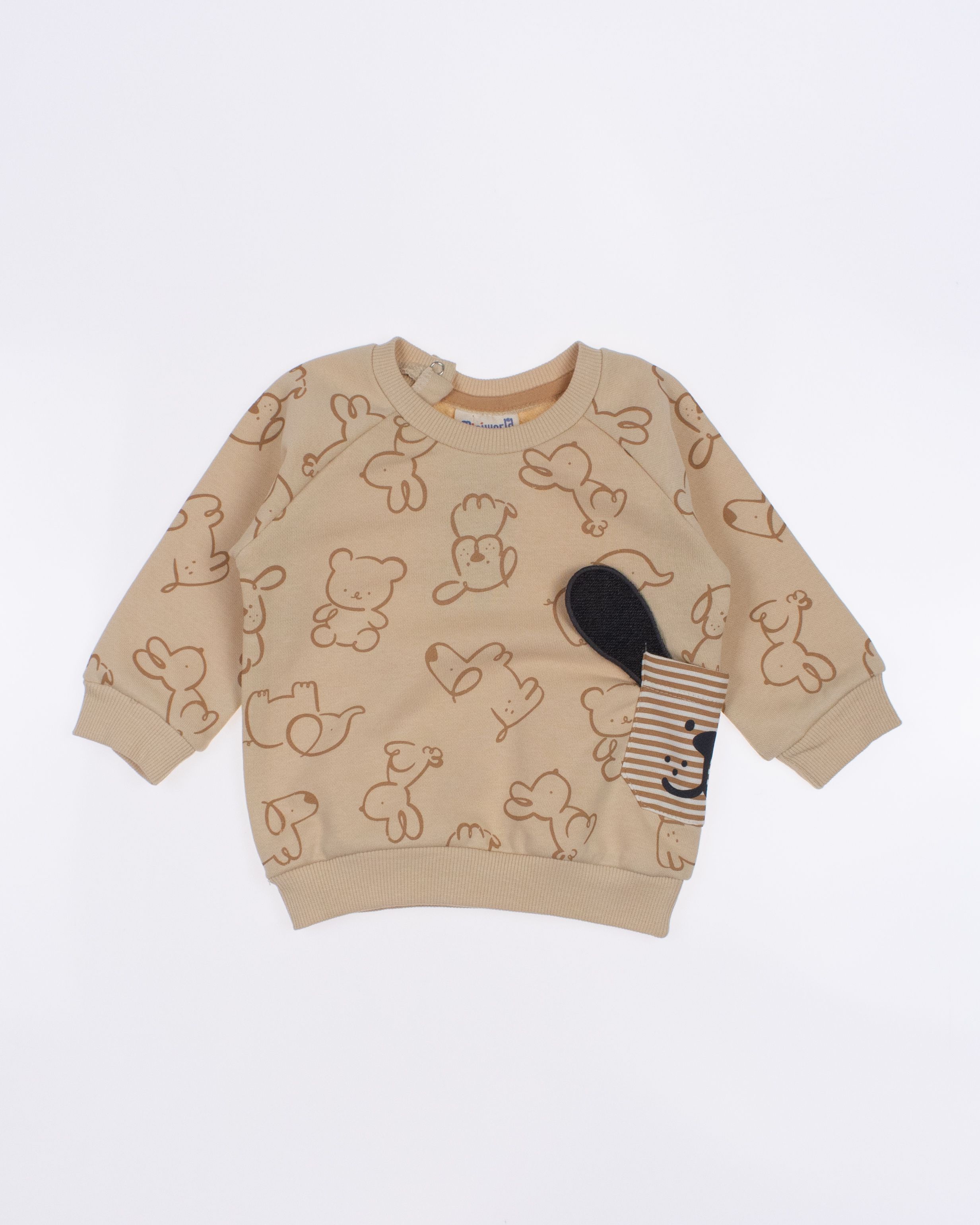Мы предлагаем оптовые продажи детской одежды производства Турция. Хлопковый костюм  MINIWORLD выполнен из футера (петля), что гарантирует комфорт и безопасность для самых маленьких детей. Свитшот имеет удобную застежку-кнопки на плече, что облегчит процесс надевания и снятия одежды. Штанишки с мягкими манжетами на эластичном поясе идеально подходят для ношения с подгузником, обеспечивая свободу движений и комфорт. Детский милый принт на костюме поможет развить фантазию и воображение ребенка, делая его образ ярким и запоминающимся. Костюм MINIWORLD - отличный выбор для маленьких модников и их заботливых родителей. Не упустите возможность приобрести этот уникальный товар оптом по выгодной цене!