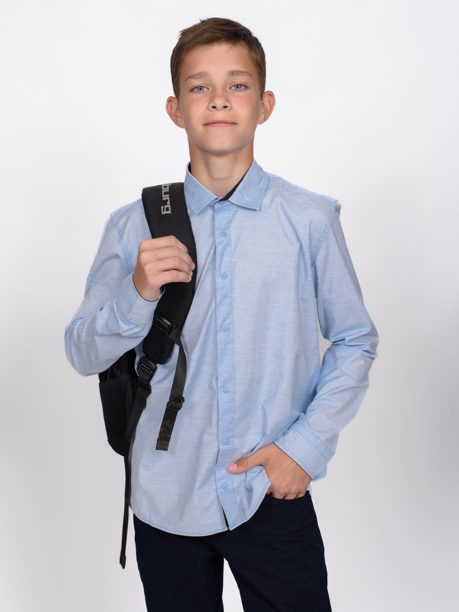 Элегантная рубашка приталенного кроя станет любимой вещью в гардеробе вашего юного модника. Длинные рукава и классический отложной воротничок делают модель универсальной — она уместна и в школе, и на празднике.